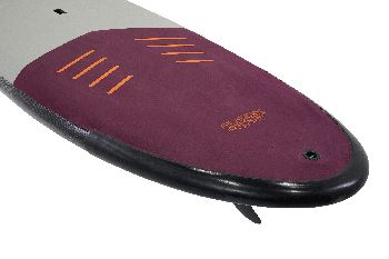 A deszka 279 cm-es hosszához és 77 cm-es szélességéhez 139 literes bőséges térfogat társul, amely magas fokú stabilitást biztosít. A step-deck kialakítás egy mesteri megoldás: a középső részen meghagyott térfogat magabiztos egyensúlyt ad, míg a peremek felé elvékonyodó profil miatt a mindössze 9 kg-os deszka sokkal élénkebben reagál a testsúlyáthelyezésre. A finoman ívelt rocker vonal és az emelt orr-rész hatékony emelkedést biztosít, megakadályozva a deszka lemerülését a meredekebb szakaszokon is.